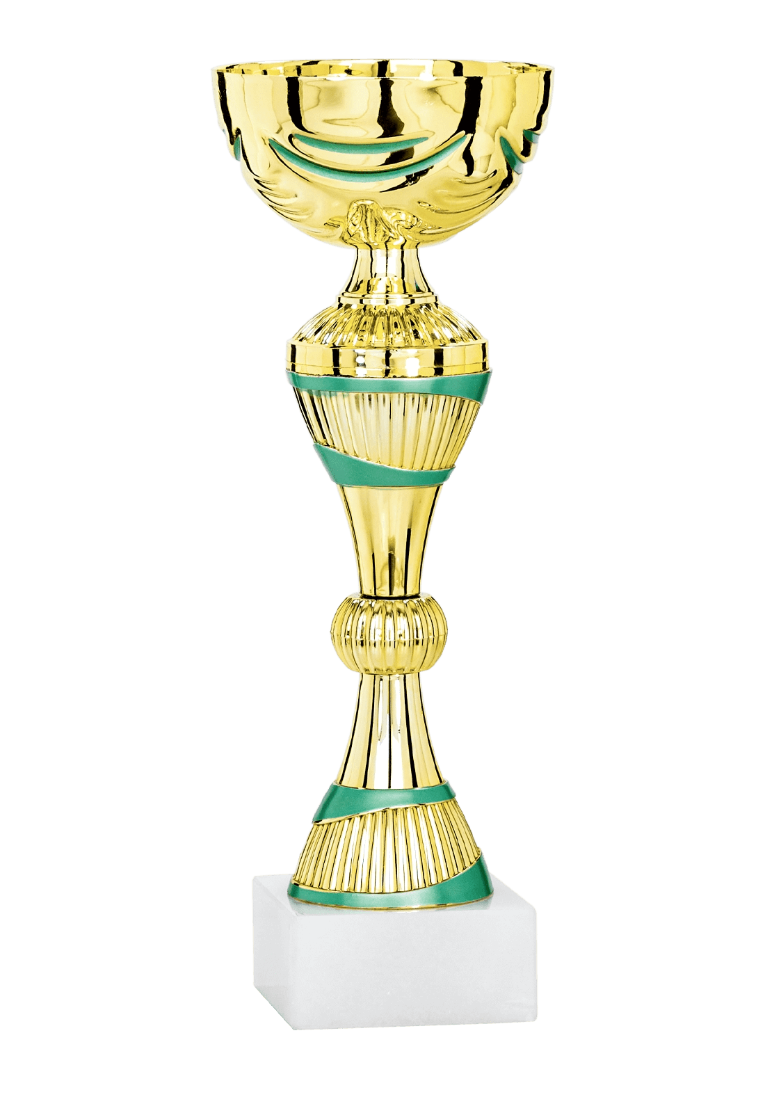 Célébrez la victoire avec une magnifique petite Coupe de la ligne Economique de couleur or et vert. Déclinée en 3 tailles, elle est idéale pour afficher le succès des joueurs lors d’une compétition ou événement sportif.